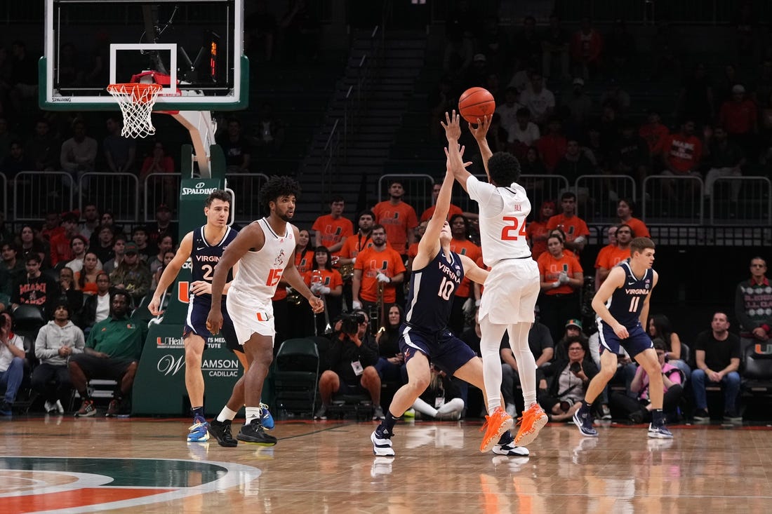 Jordan Miller contributed 11 points and five rebounds and Norchad Omier powered inside for 10 points, eight rebounds and four blocks as Miami (12-1, 3-0 ACC) snapped a six-game losing streak against Virginia.