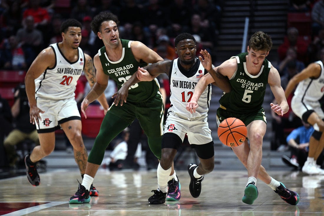 The Aztecs helped themselves in the opening half by forcing 10 turnovers while committing just two. San Diego State also benefited by going 13-for-14 at the line in the half, compared to 3-for-3 for the Rams.