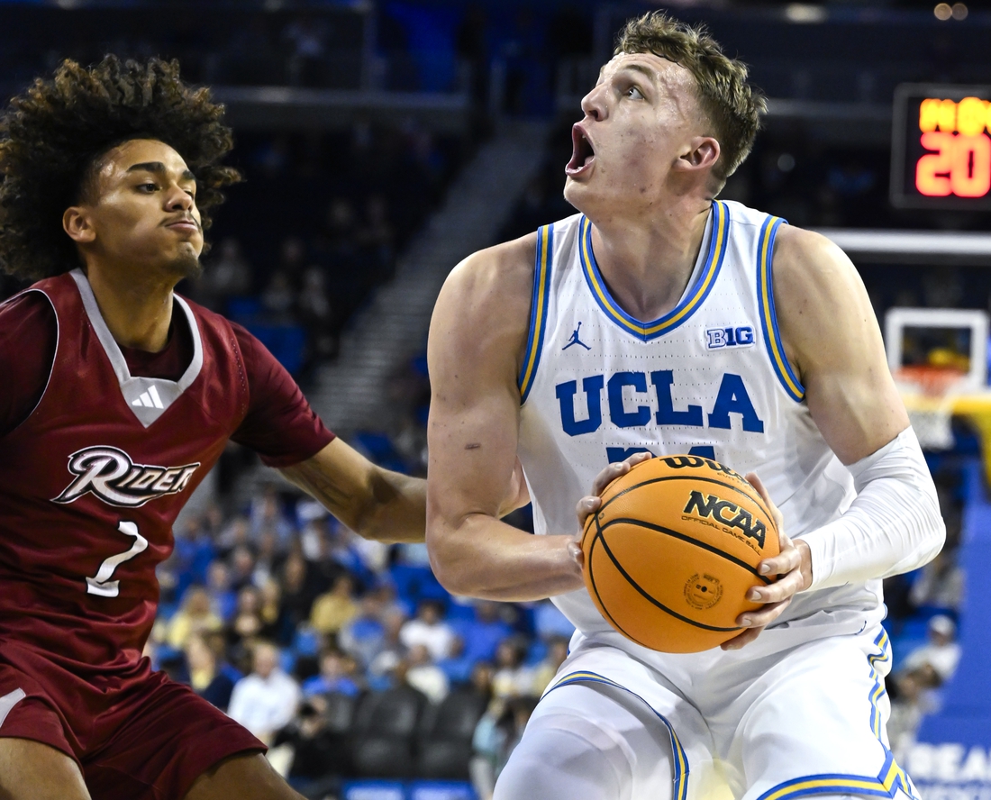 UCLA (1-0) had little trouble with Metro Atlantic Athletic Conference opponent Rider on Monday, as the Bruins pounced on the Broncs early in an 85-50 blowout. A mostly new-look UCLA lineup clicked immediately.