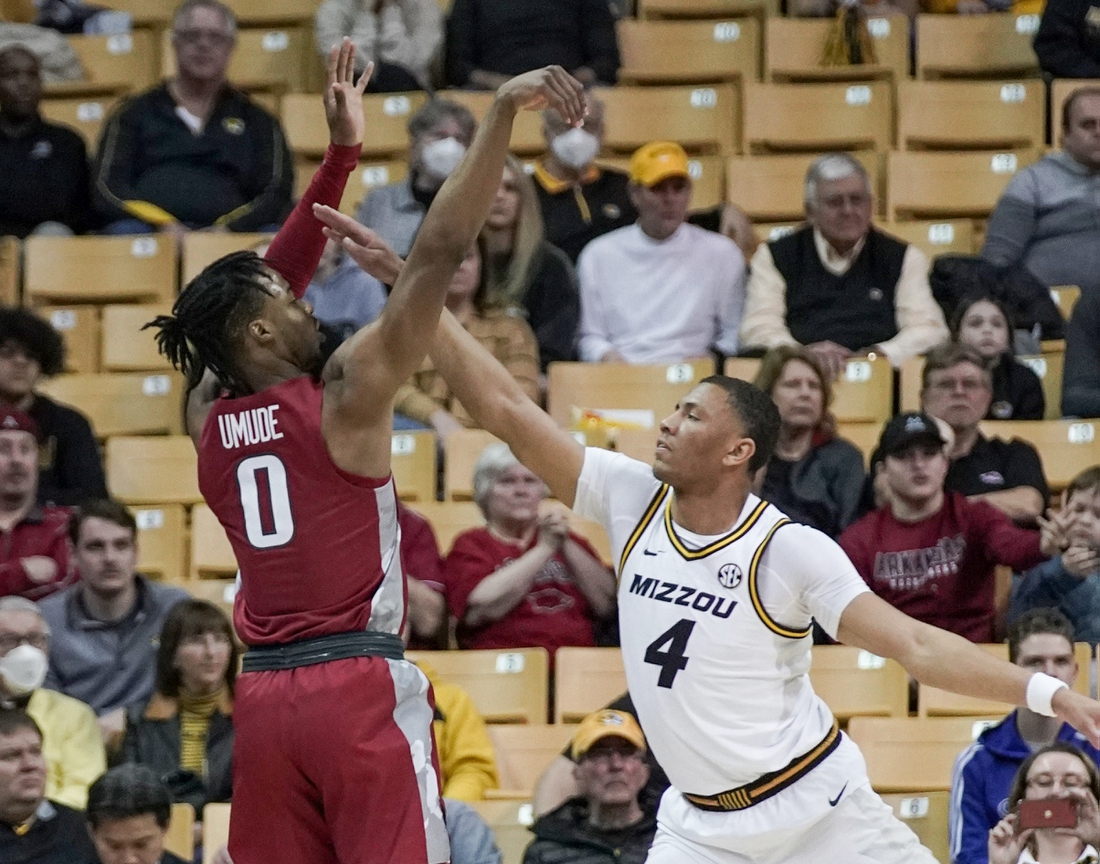 Stanley Umude scored 23 points and JD Notae added 17 as No. 23 Arkansas routed outmanned Missouri 76-57 Tuesday night in Columbia, Mo.