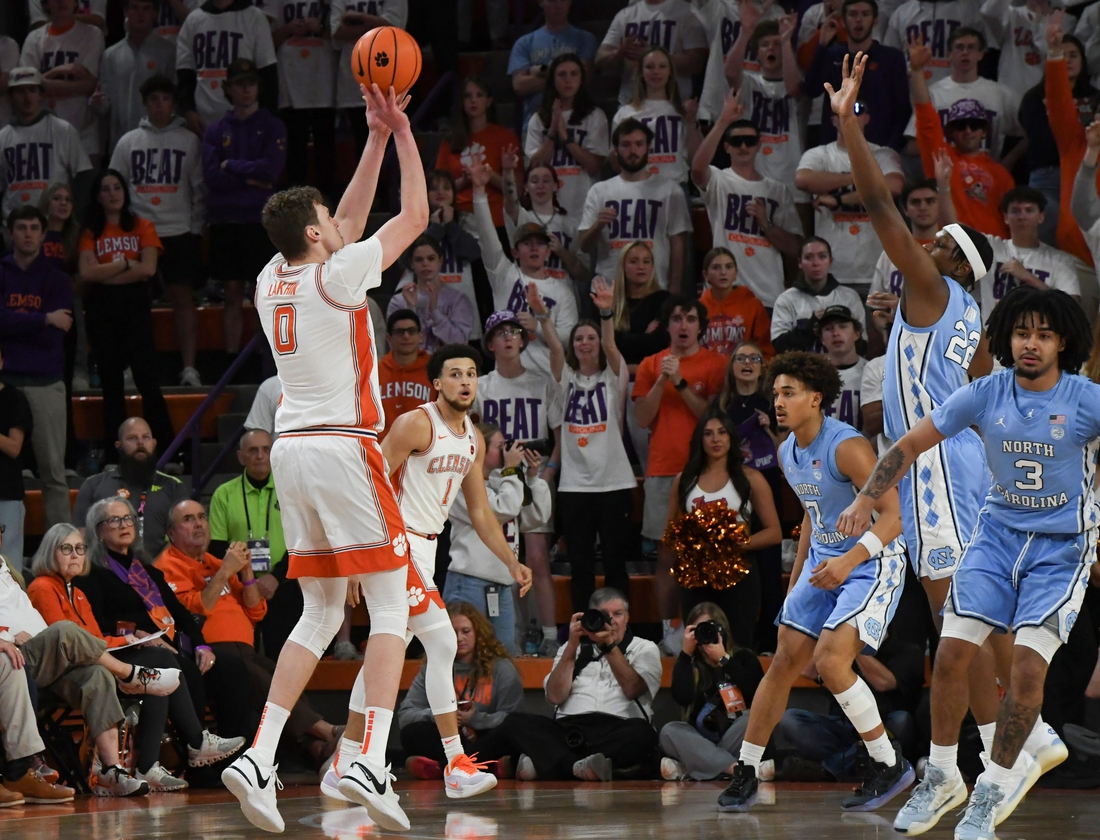 Clemson outscored North Carolina by 36-12 from 3-point range as Lakhin and Hunter both drained four 3s. The Tigers, who shot 50 percent from the floor, were tough around the basket, too, with Ian Schieffelin grabbing 10 rebounds to help fuel a 41-28 rebounding advantage.