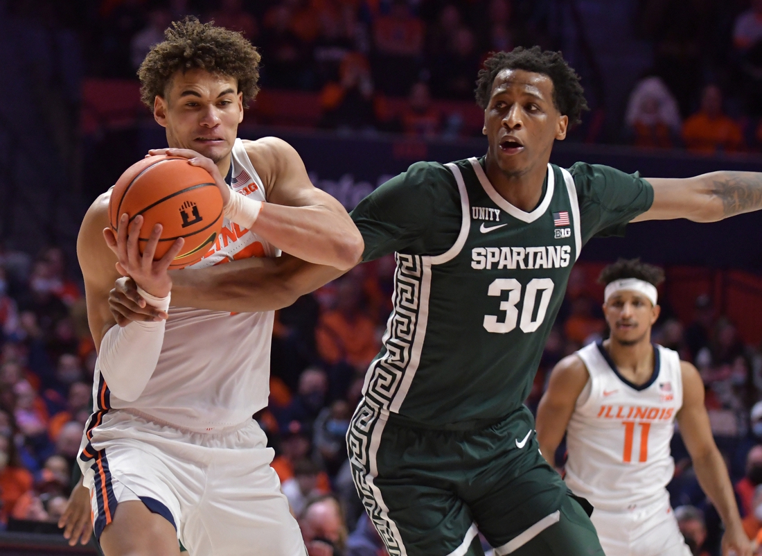 The Spartans pulled within six with four minutes left in the half, but Illinois finished with a 10-2 run.