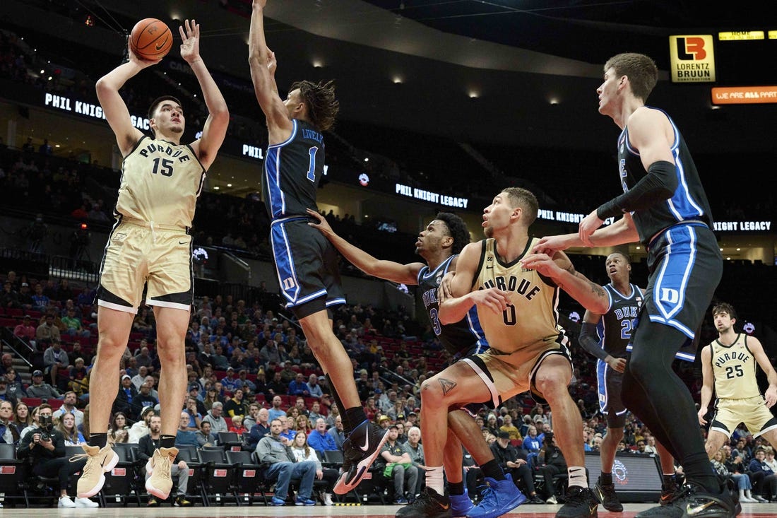 Purdue held a 58-41 lead before the Blue Devils rallied, beginning with an 8-0 run and cutting the gap to 62-55 with 9:14 to play. Duke’s zone defense seemed to put the Boilermakers out of rhythm.