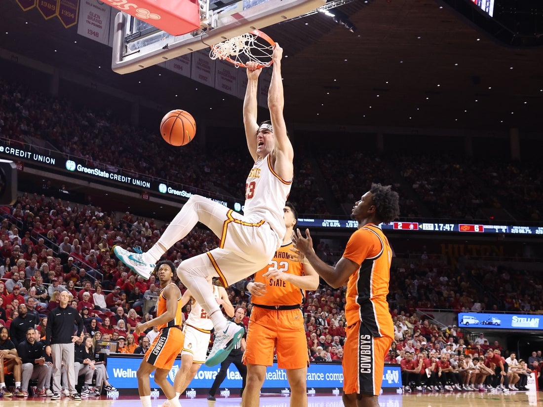 The Cowboys led for much of the first half, but the Cyclones were finally able to take a 27-26 lead with 6:43 to go with a 6-0 run.