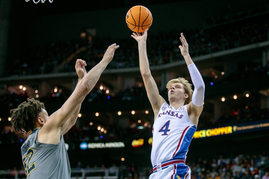 The Mountaineers crawled back within six on two foul shots by Toussaint with 1:09 left, but Harris’ putback allowed Kansas to take a 31-23 lead to halftime.