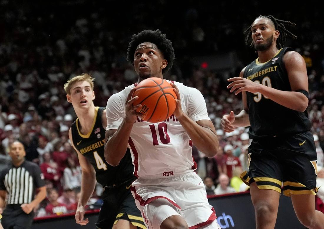 Alabama, which has five players averaging 11-plus points per game, was led by Aden Holloway and Mouhamed Dioubate with 22 points apiece against Vanderbilt. Mark Sears added 21 while surpassing 2,500 career points. Dioubate added 10 rebounds to his career-high point total.