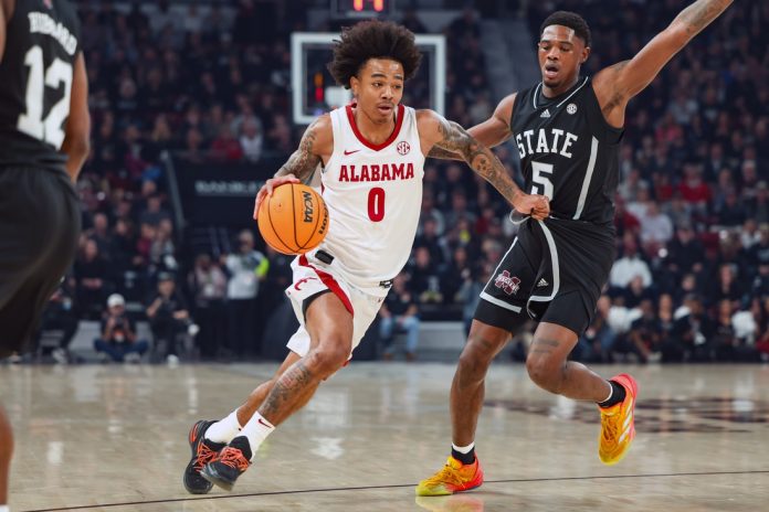 Chris Youngblood scored a season-high 23 points on a career-best seven 3-pointers to help No. 4 Alabama squeeze out an 88-84 victory over No. 14 Mississippi State on Wednesday night in Starkville, Miss.