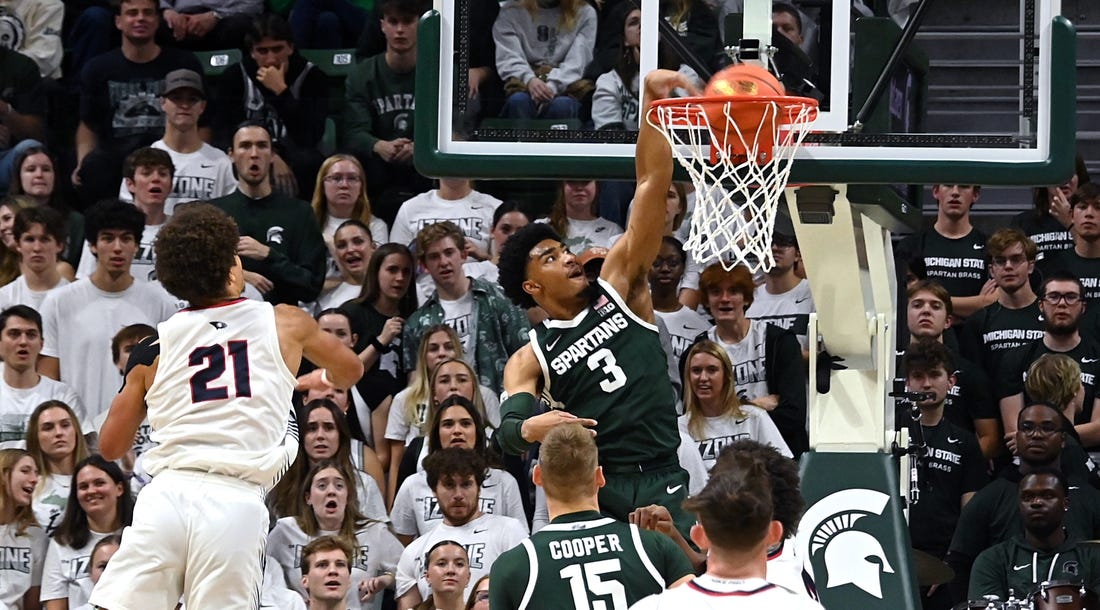 The Spartans scored nine straight points later in the half to take a 71-43 lead with 4:54 left to put the game away.