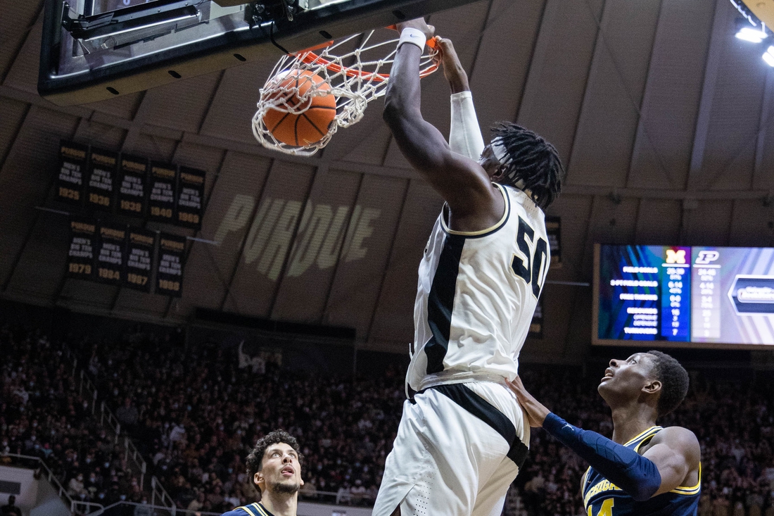 The Boilermakers relied on their size to surge past the Wolverines. Zach Edey had 13 points and nine rebounds as Purdue enjoyed a 32-22 rebounding advantage while outscoring the Wolverines 44-26 in the paint.