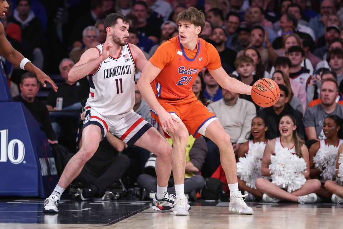 Boogie Fland made a layup to trim UConn’s advantage to 76-73 with 13 seconds left and Florida trapped Jayden Ross along the sideline and forced a turnover. The Gators, however, were whistled for a five-second violation to effectively end the game.