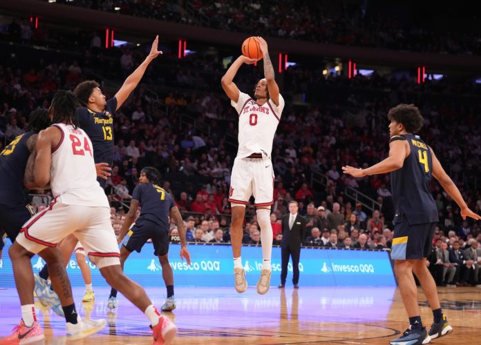St. John’s answered with a 22-7 run and forged a 31-all tie with 5:11 left on a corner 3 by Deivon Smith. There were two more deadlocks the rest of the half before Marquette entered the break with a 37-35 lead following two free throws by Mitchell with 30 seconds left.