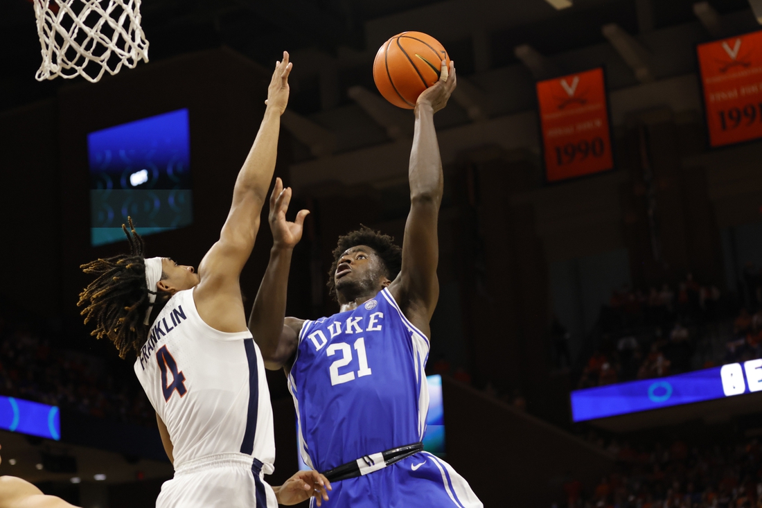 Jeremy Roach scored 15 points off the bench and AJ Griffin hit key shots in the final minutes as No. 7 Duke survived for a 65-61 road victory at Virginia on Wednesday night at Charlottesville, Va.