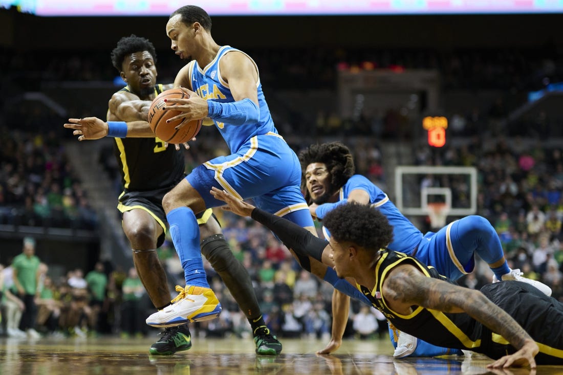 UCLA completed a regular-season sweep of Oregon and earned its first victory at Eugene under head coach Mick Cronin. The Bruins have won four games in a row overall and, coupled with Arizona’s loss at Stanford earlier in the day, extended their lead in the conference to 1 1/2 games.