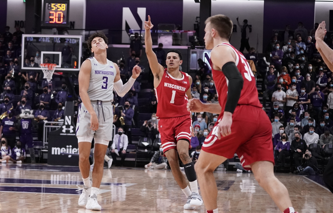 Sophomore guard Johnny Davis, who had 27 points in the win over Northwestern, leads the Badgers in scoring (22.1 points per game) and rebounding (7.5).
