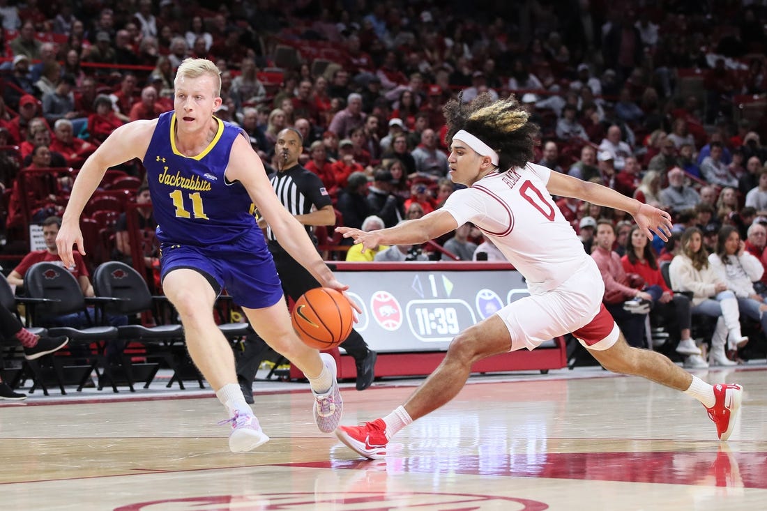 Freshman Anthony Black scored 26 points to go along with six assists, three rebounds and two steals against Louisville after scoring 18 points in the Razorbacks’ first three games of the season combined. Ricky Council IV added 15 points vs. the Cardinals, while Makhel Mitchell finished with 12 points and six rebounds.