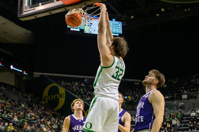 Seven-footer Nate Bittle leads the balanced Ducks in scoring (13.2 points), rebounds (8.2) and blocks (1.8) per game.