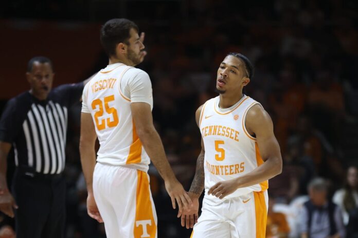 Tennessee’s Josiah-Jordan James sank five 3-pointers to highlight his 15-point performance. James added seven rebounds, and South Carolina Upstate transfer Jordan Gainey scored 11 points off the bench.