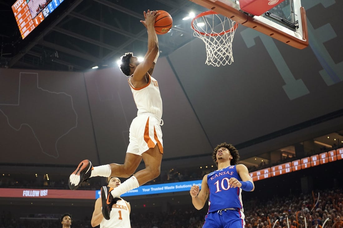 Sir’Jabari Rice scored 23 points and Tyrese Hunter added 20 as No. 9 Texas cruised to a 75-59 victory over No. 3 Kansas in Big 12 play on Saturday in Austin, Texas.
