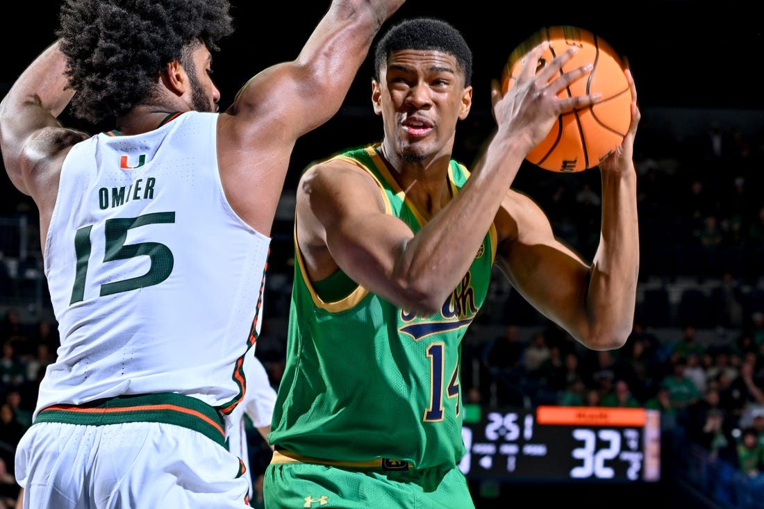 Notre Dame trailed 37-29 at halftime and Miami’s lead grew to 39-31 early in the second half after another Omier basket.