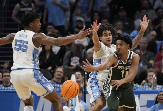 Michigan State closed within 57-53 with more than 10 minutes to play, and it was 62-57 before Jae’Lyn Withers’ second basket in a 36-second span began North Carolina’s 7-0 spurt.