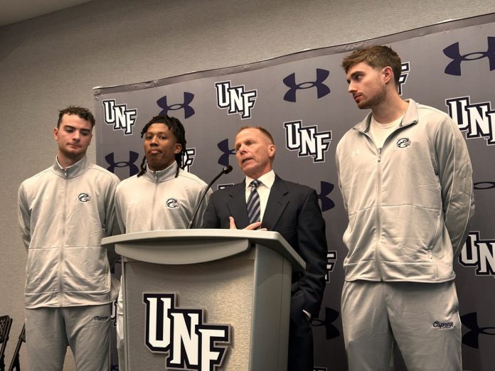 North Florida continued its hot shooting to start the second half. The Ospreys outscored the Yellow Jackets 11-0 to take a 66-56 lead at 16:27 and never slowed down. UNF built the lead to 20 when Lliteras drove the lane for a slam, drew a foul and finished the three-point play to complete a 14-0 run that made it it 80-60 with 11:08 left.