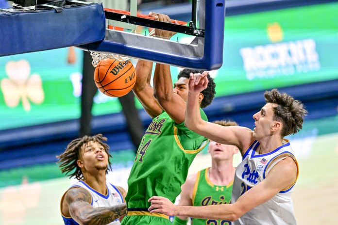 Pitt closed within 74-72 with eight seconds left, but J.R. Konieczny responded with two free throws and the Fighting Irish survived despite not making a field goal in the final 2:43 of the game.