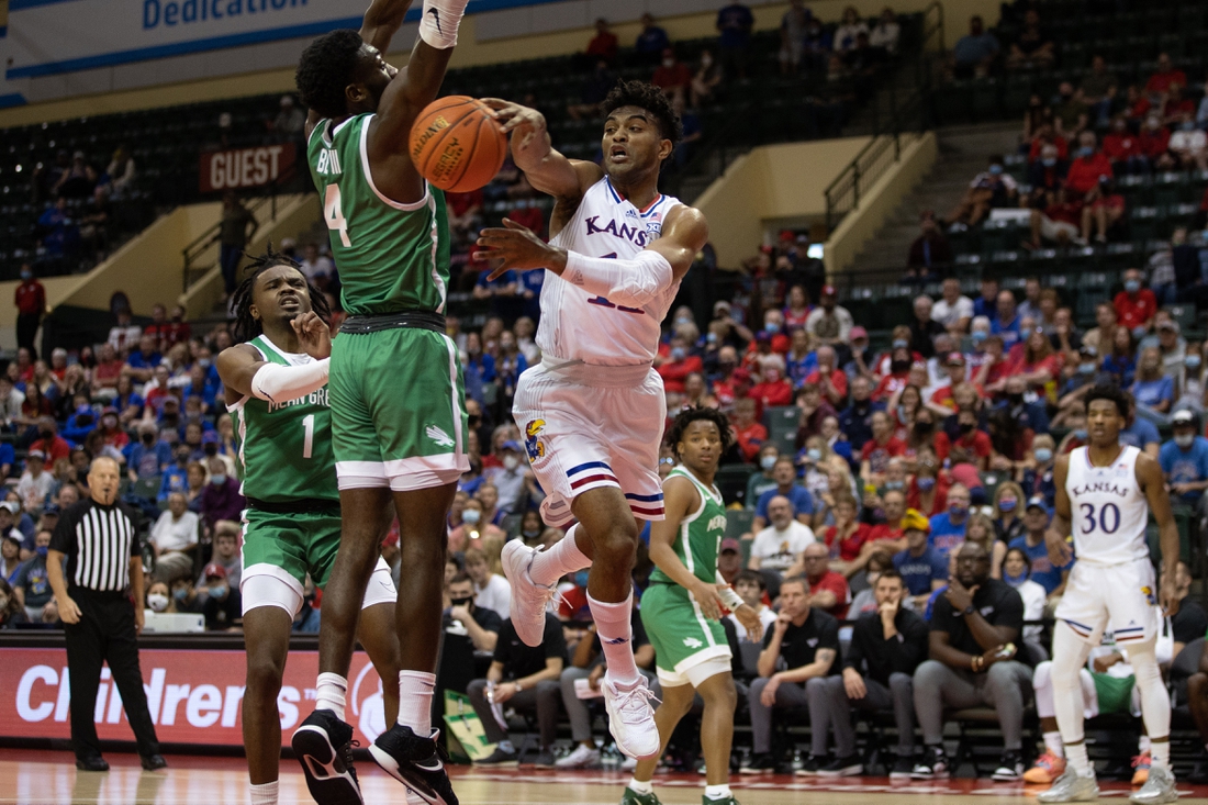 Agbaji scored 10 first-half points to pace Kansas to a 35-27 halftime lead. The Jayhawks led by as many as 13 before the Mean Green narrowed the margin and scored on four of its last six possessions.