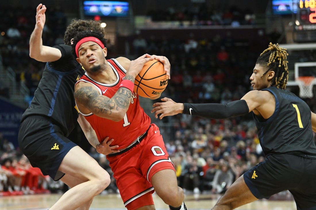 West Virginia’s Kerr Kriisa missed the first shot of a one-and-one with eight seconds left, and Jamison Battle got the rebound for Ohio State to run out the clock.