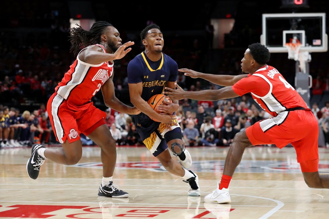 Even with the large disparity, Merrimack was able to cut a 23-11 deficit to five because the Buckeyes went 7:39 without making a field goal until Gayle’s layup with 39 seconds left in the first half.