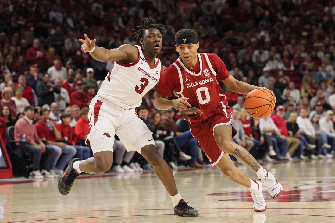 On a screen-and-roll with Fears, Godwin hammered home an alley-oop dunk as OU took a 26-16 lead. Thiero hit a pair of free throws on the next Arkansas possession, but Godwin flew in for a two-handed dunk to cap a 13-5 Sooners run.