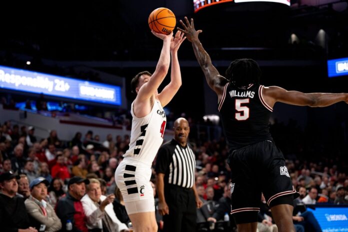 Lukosius sank a 3-pointer to halve the deficit with 1:18 to play, and Dan Skillings Jr. added a layup to bring the Bearcats within one at 74-73 with 26 seconds left. Small made two pairs of free throws around a layup from Cincinnati’s John Newman III. Thomas made one free throw before intentionally missing the second with four seconds left, but the Bearcats were unable to net the equalizer.