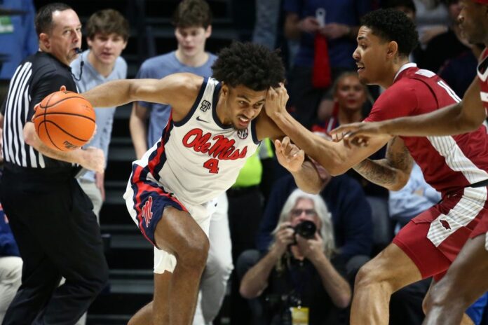 Jaylen Murray scored 21 points, Matthew Murrell had 18 and Ole Miss dominated short-handed Arkansas 77-51 on Wednesday night in Oxford, Miss.