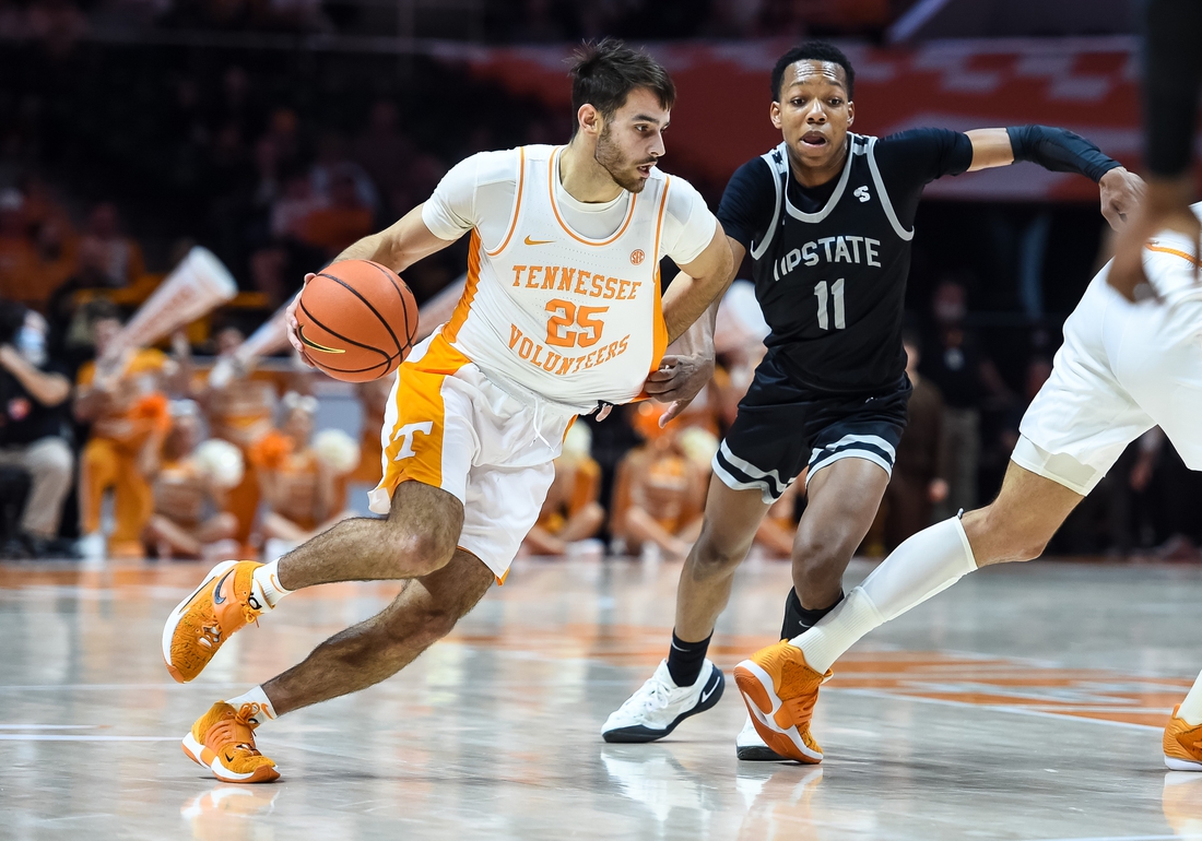 The Volunteers’ lead grew to 13-0 on Josiah-Jordan James’ 3-pointer with 16:44 left before Mozone finally got the Spartans on the board with a trey. Jordan Gainey’s jumper cut the deficit to 13-5 with 15:42 left, but that marked the last time South Carolina Upstate’s deficit was in single digits.