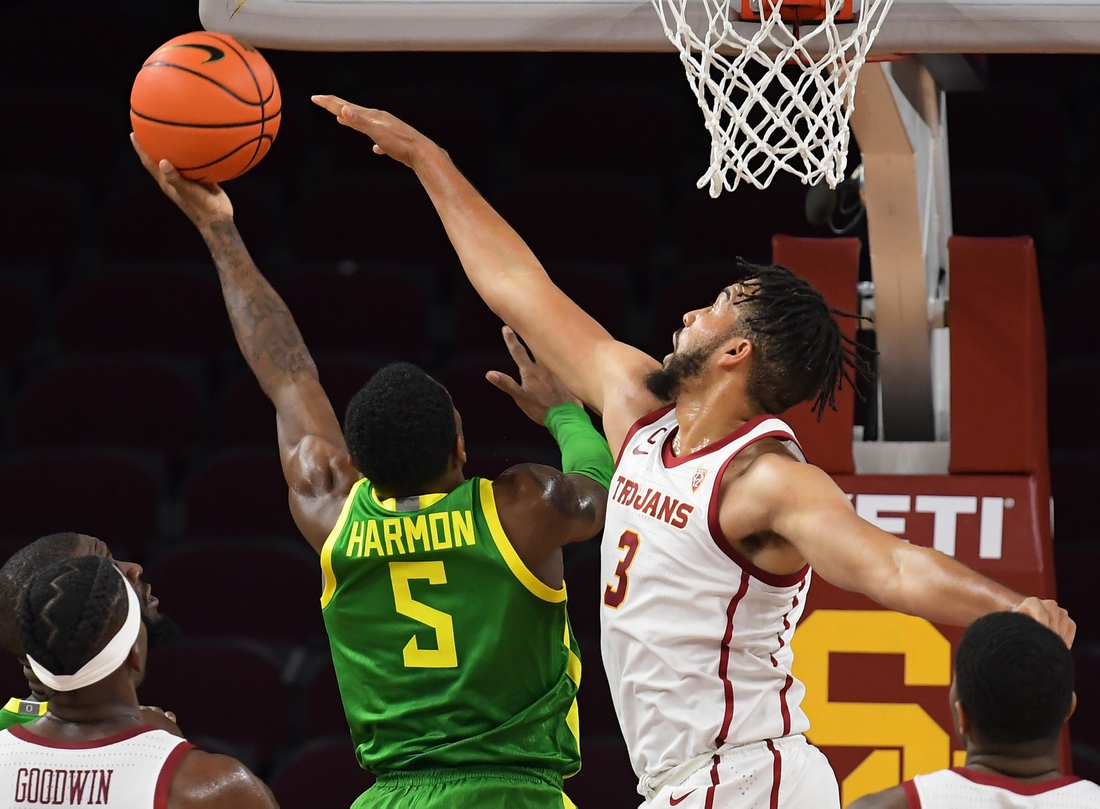 With no home crowd to promote a rally — only players’ family members were allowed to attend due to COVID-19 concerns — the Ducks kept converting and keeping USC at bay. Richardson’s steal and layup boosted the advantage to 30-17 with 8:32 left.