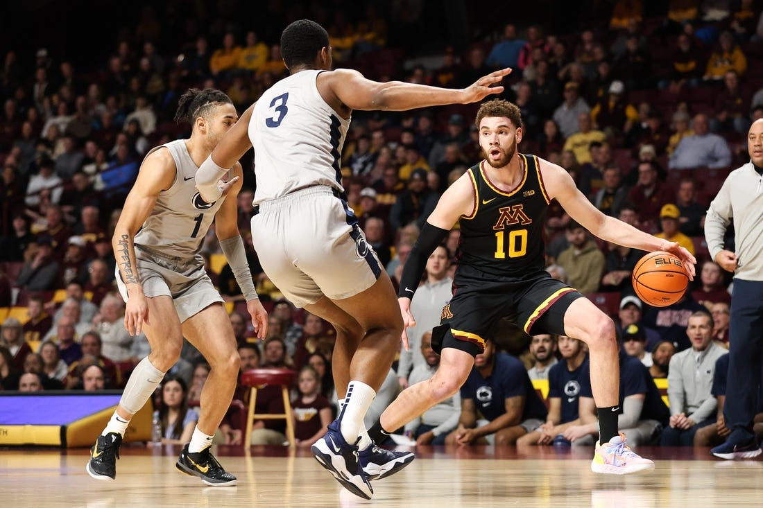 Penn State held a 45-35 lead at halftime, but Minnesota climbed back into the game to start the second half, going on a 13-1 run to take a 48-46 lead with 13:29 remaining.
