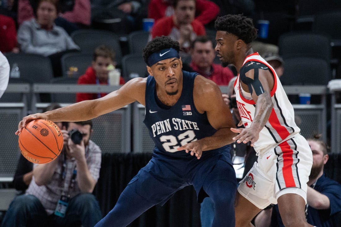 “We’re not pressing. We’re not in passing lanes. We’re not overdoing it,” Penn State coach Micah Shrewsberry said. “We just want to be solid and disciplined in our spots, and that’s when good things happen for you. That’s when you get deflections when you’re in the right spot.”