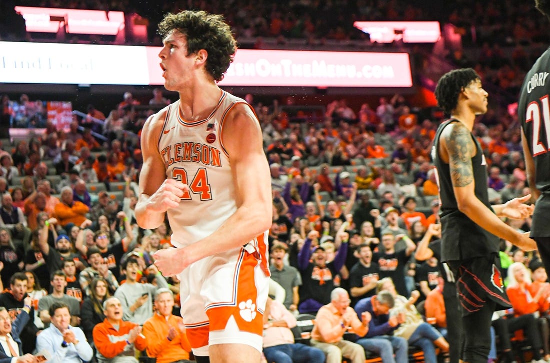 PJ Hall led the Tigers with 26 points against the Blue Devils. It was the first time this season that both of Clemson’s top two scorers — Hunter Tyson and Chase Hunter — failed to score in double digits. Still, the Tigers won.