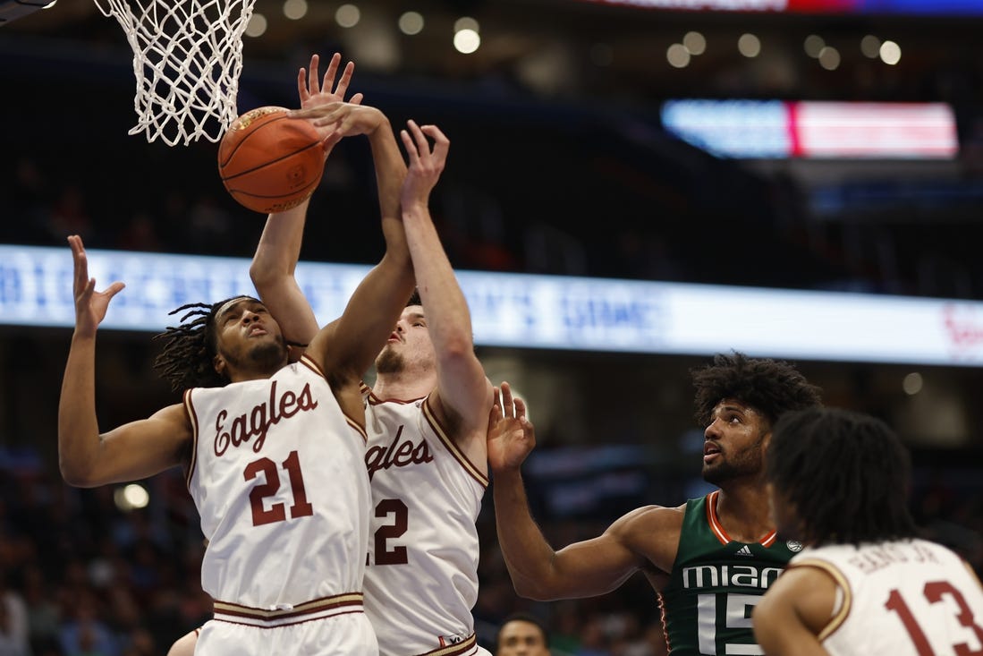 Post continued to cook, scoring the game’s next five points as the Hurricanes’ offense stalled. Madsen drilled another triple and Post tacked on two free throws to cap the 14-0 stretch that boosted Boston College ahead 27-13 at the 11:10 mark of the first half.
