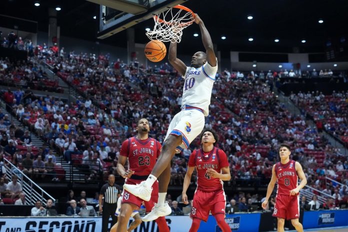 Bidunga, the Big 12 Defensive Player of the Year who has been widely considered the best player in this year’s transfer portal class, averaged 13.3 points, a team-high 9.0 rebounds and 2.6 blocks in 35 games (34 starts) during his second season with the Jayhawks. The 6-foot-10, 235-pound leaper ranked fourth nationally in blocks per game.