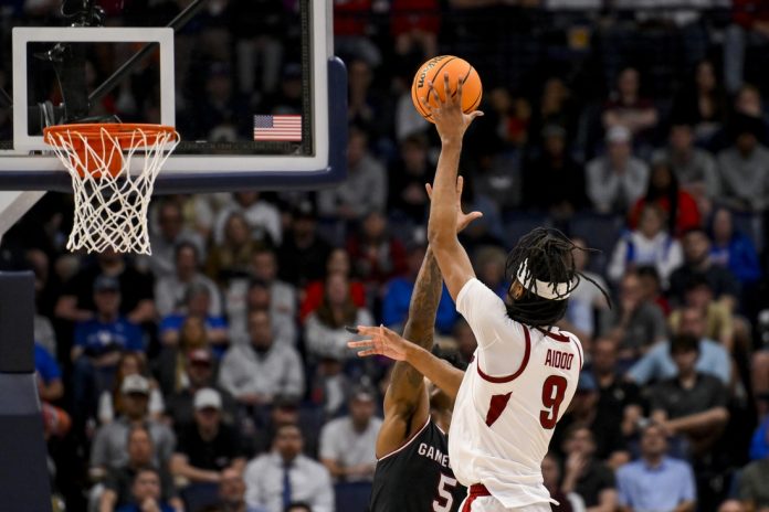 Aidoo finished with 14 points and 11 rebounds as the Razorbacks (20-12) advanced to a second-round matchup Thursday with No. 8 seed Ole Miss. Johnell Davis added 14 points, including two foul shots with 2.5 seconds left to seal the outcome, and D.J. Wagner chipped in 13 points plus six assists.