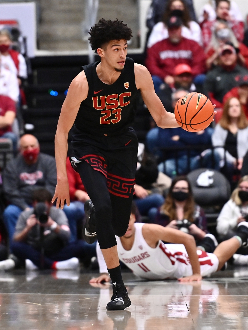 USC’s Boogie Ellis struggled to score for a second straight game. After going scoreless on 0-of-10 shooting in Tuesday’s win over Eastern Kentucky, he was stuck on five points until the final two minutes Sunday.