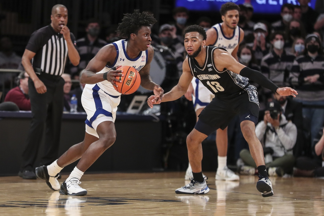 The Pirates scored six straight points while holding Georgetown without a field goal for four minutes late in the game. Rhoden blocked a 3-point attempt to set up Alexis Yetna’s fastbreak dunk, putting Seton Hall up 52-50 with 2:52 to go.