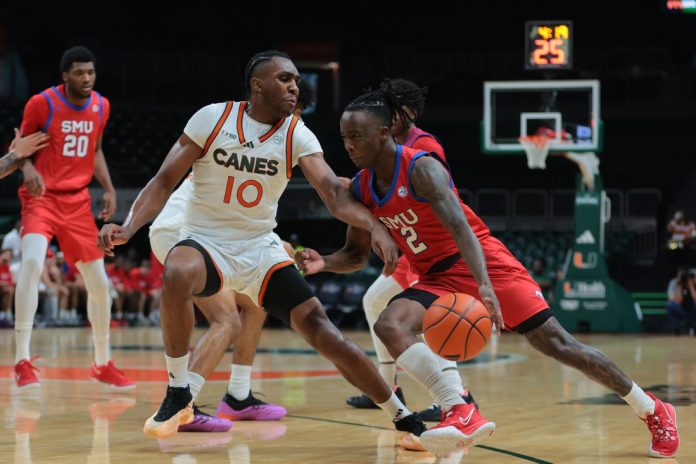 In the first half, SMU shot 76.5 percent (26 of 34) from the floor and 63.6 percent (7 of 11) on 3-pointers. SMU also had a 19-4 rebounding advantage and outscored Miami 34-8 in the paint.