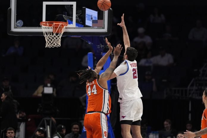SMU needs to string together victories to get into position for an NCAA Tournament bid and this was a good start, beating the Orange for the second week in a row. The sixth-seeded Mustangs (23-9) meet third-seeded Clemson (26-5) in Thursday’s late-night quarterfinal.
