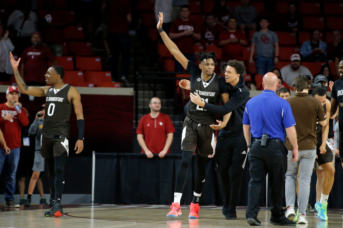 “This win says a lot about our guys,” 15th-year St. Bonaventure coach Mark Schmidt said about his team after a 70-68 win at Oklahoma on Sunday. “Our guys showed some great mental and physical toughness. I’m just really proud of the way we played.”