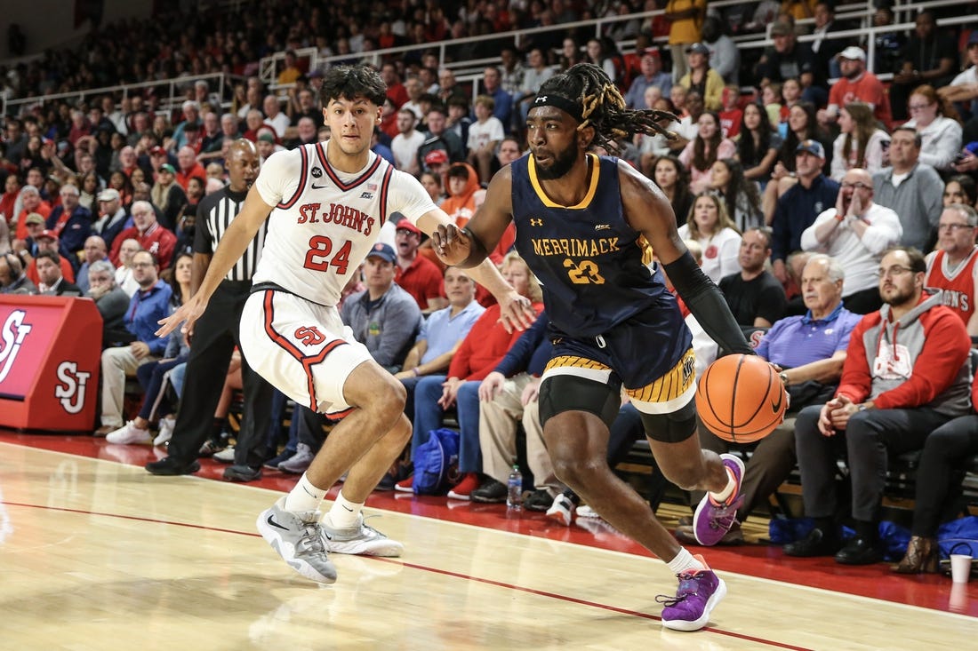 Montez Mathis added 16 points for the Red Storm, who dominated their first meeting with Merrimack by leading for 37:52, scoring 46 points in the paint and converting 18 layups and dunks.