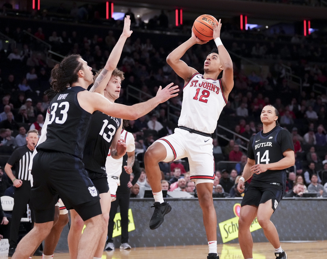 Luis hit two 3s and scored eight points as St. John’s scored 15 straight points and opened an 18-3 lead on his corner 3 with 12:29 left. Butler made a small dent with Luis resting and cut the deficit to 31-21 on a basket by Boden Kapke with 4:23 left.