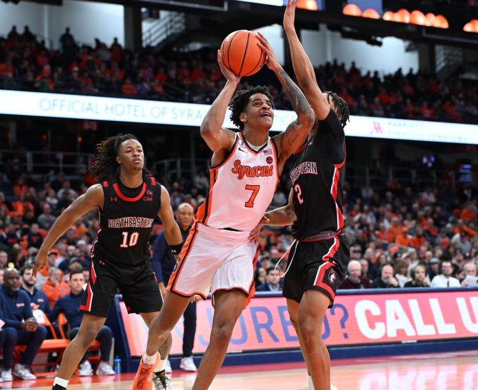Syracuse led by as many as 15 points Saturday before Northeastern inched within five points in the final minutes.
