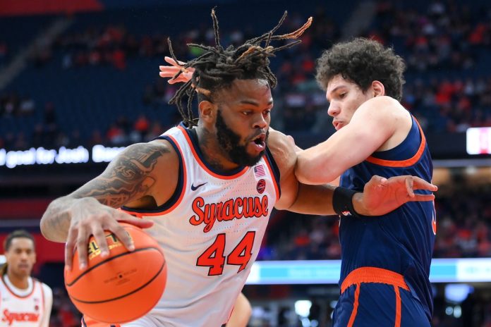 In the final nonleague game for both teams, Syracuse shook off a slow start with a 9-0 run ignited by a Lucas Taylor 3-pointer and capped with a layup by Freeman that put the Orange up 12-6 with 14:30 to go.