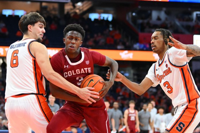 Syracuse responded with an 18-6 run, after which Colgate scored the next eight points and tied the game at 30-30 on Baker’s layup with 3:31 to go before halftime.